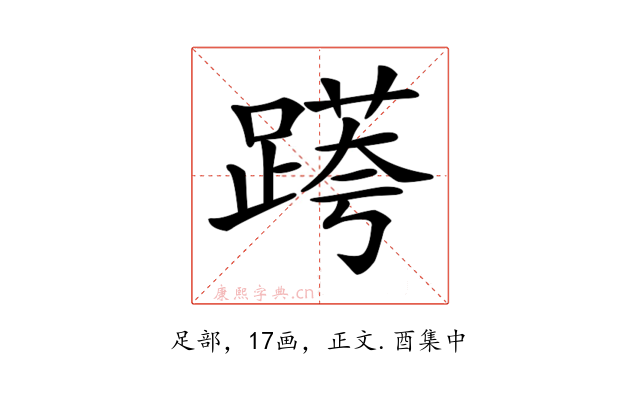 〔𨃖〕字收录于《康熙字典》正文・酉集中,康熙部首是足部。