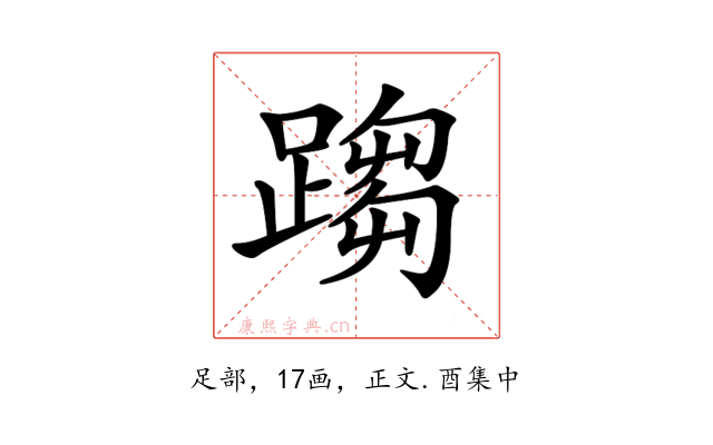 〔𨃘〕字收录于《康熙字典》正文・酉集中,康熙部首是足部。