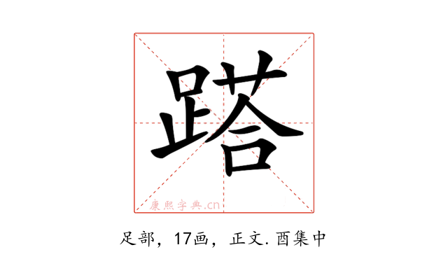 〔𨃚〕字收录于《康熙字典》正文・酉集中,康熙部首是足部。