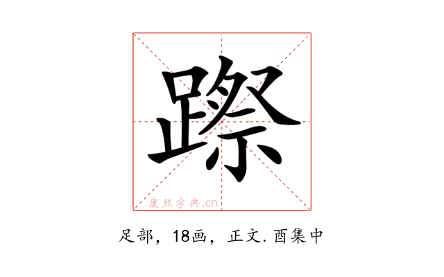 〔𨄊〕字收录于《康熙字典》正文・酉集中,康熙部首是足部。