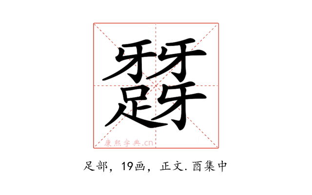 〔𨅪〕字收录于《康熙字典》正文・酉集中,康熙部首是足部。