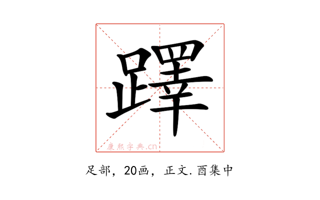 〔𨆅〕字收录于《康熙字典》正文・酉集中,康熙部首是足部。