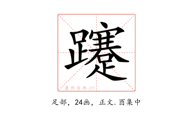 〔𨇥〕字收录于《康熙字典》正文・酉集中,康熙部首是足部。
