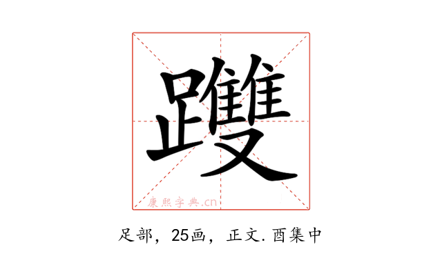 〔𨇯〕字收录于《康熙字典》正文・酉集中,康熙部首是足部。