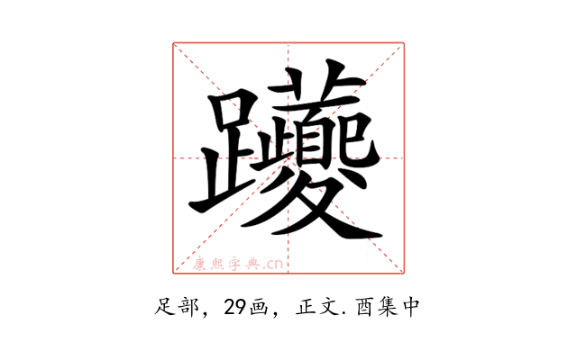 〔𨈉〕字收录于《康熙字典》正文・酉集中,康熙部首是足部。