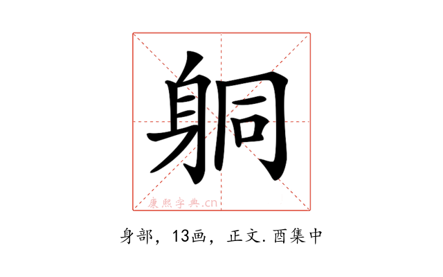 〔𨈹〕字拼音是tǒng,左右结构,可拆字为身、同。