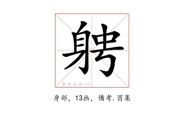 〔𨉂〕字收录于《康熙字典》備考・酉集,康熙部首是身部。