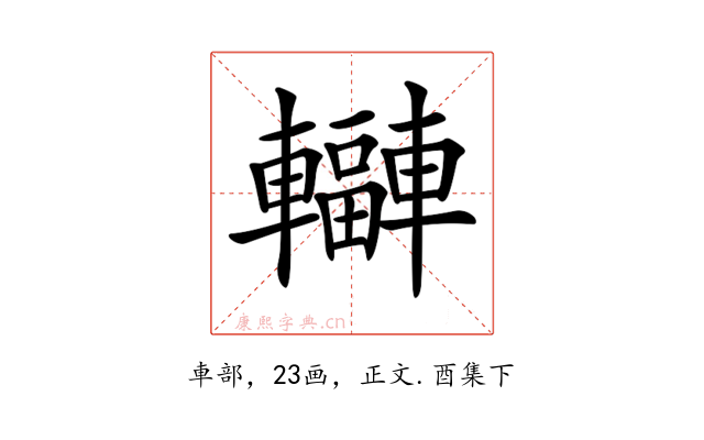〔𨏟〕字收录于《康熙字典》正文・酉集下,康熙部首是車部。