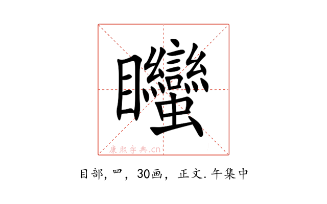 〔䂅〕字收录于《康熙字典》正文・午集中,康熙部首是目部。