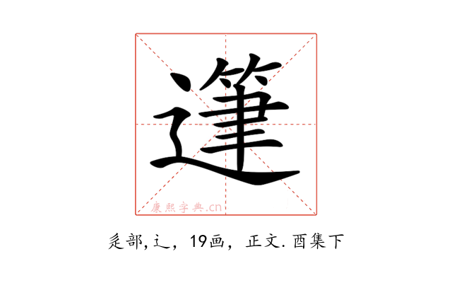 〔𨖷〕字收录于《康熙字典》正文・酉集下,康熙部首是辵部。