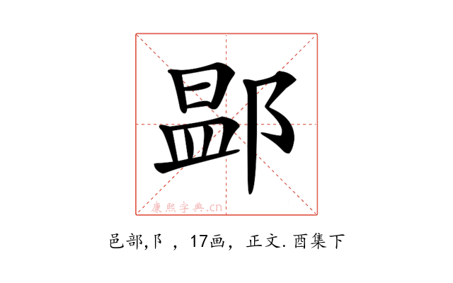 〔𨜵〕字收录于《康熙字典》正文・酉集下,康熙部首是邑部。