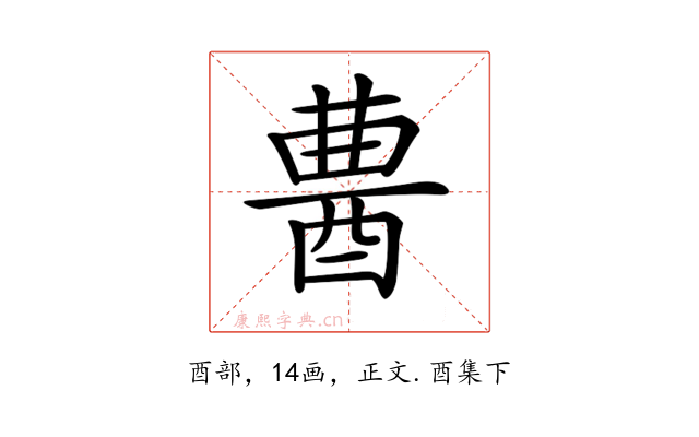 〔𨠷〕字收录于《康熙字典》正文・酉集下,康熙部首是酉部。