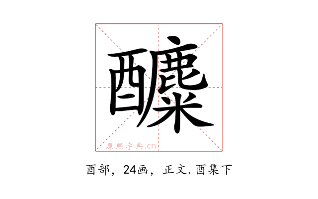 〔𨣿〕字收录于《康熙字典》正文・酉集下,康熙部首是酉部。