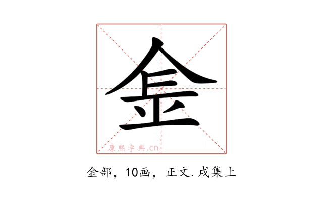 〔𨤾〕字收录于《康熙字典》正文・戌集上,康熙部首是金部。