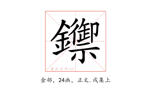〔𨯣〕字收录于《康熙字典》正文・戌集上,康熙部首是金部。