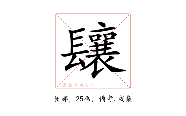 〔𨳃〕字左右结构,可拆字为镸、襄。