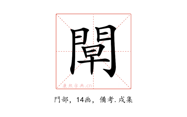 〔𨴝〕字收录于《康熙字典》備考・戌集,康熙部首是門部。
