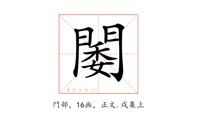 〔𨵋〕字收录于《康熙字典》正文・戌集上,康熙部首是門部。