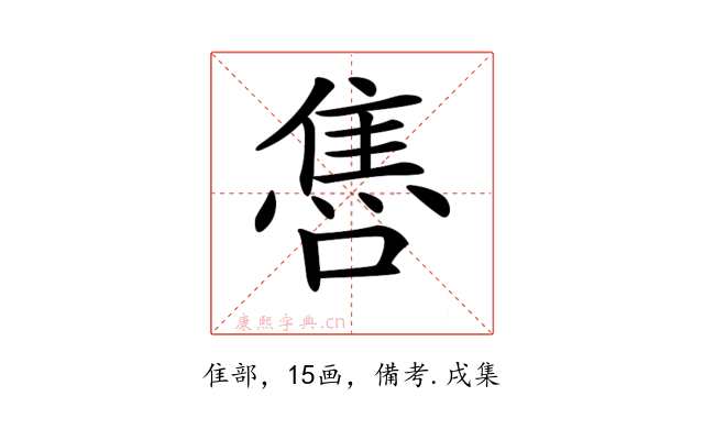 〔𨿞〕字收录于《康熙字典》備考・戌集,康熙部首是隹部。