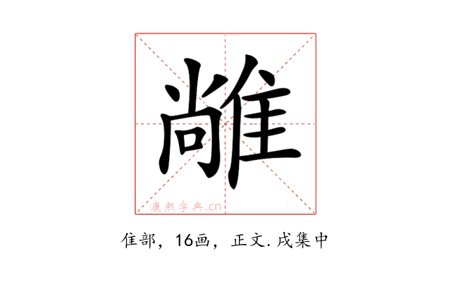 〔𨿰〕字收录于《康熙字典》正文・戌集中,康熙部首是隹部。