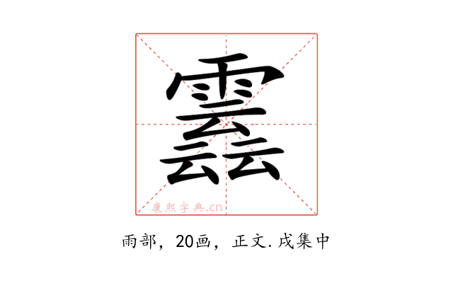 〔𩅣〕字收录于《康熙字典》正文・戌集中,康熙部首是雨部。