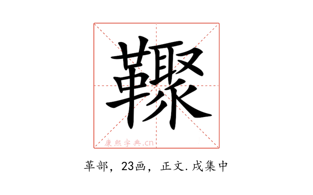 〔𩍧〕字收录于《康熙字典》正文・戌集中,康熙部首是革部。