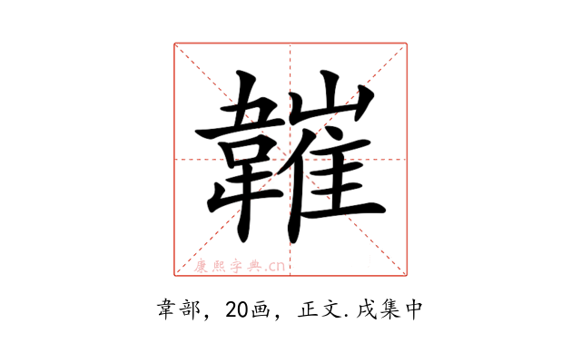 〔𩏘〕字收录于《康熙字典》正文・戌集中,康熙部首是韋部。