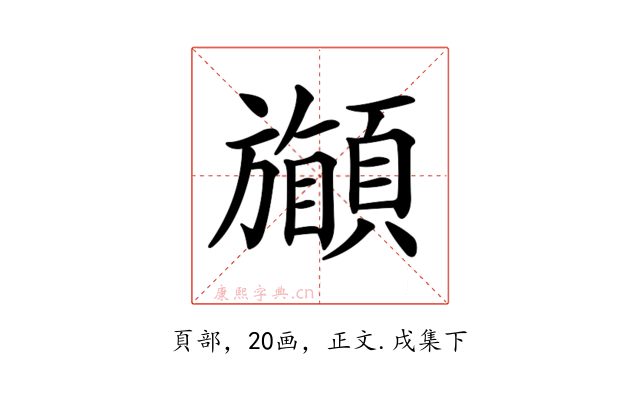 〔𩔽〕字收录于《康熙字典》正文・戌集下,康熙部首是頁部。