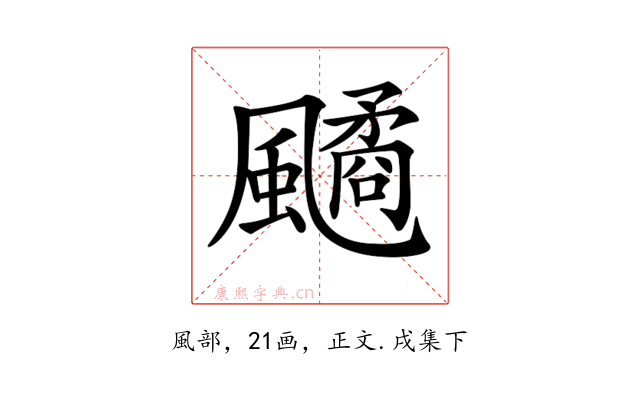 〔𩘻〕字收录于《康熙字典》正文・戌集下,康熙部首是風部。