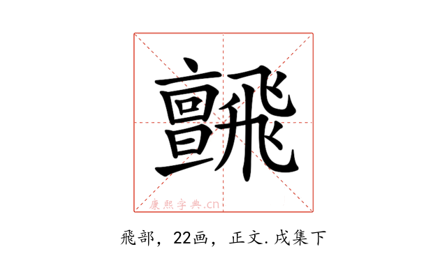 〔𩙼〕字收录于《康熙字典》正文・戌集下,康熙部首是飛部。
