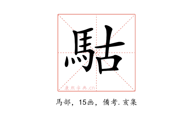 〔𩢪〕字收录于《康熙字典》備考・亥集,康熙部首是馬部。