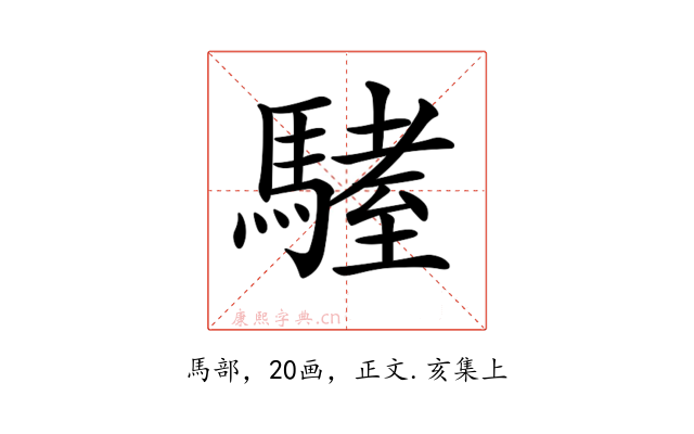 〔𩥏〕字收录于《康熙字典》正文・亥集上,康熙部首是馬部。