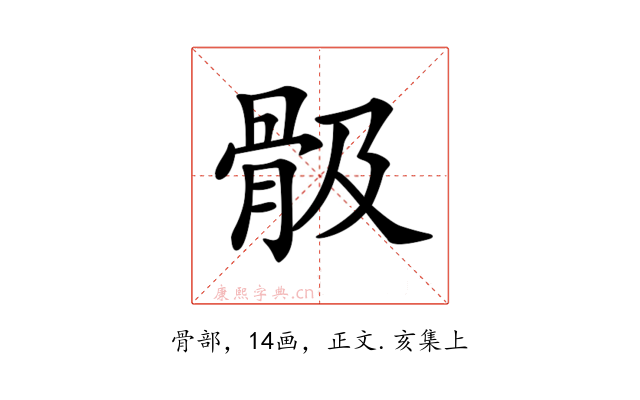 〔𩨞〕字收录于《康熙字典》正文・亥集上,康熙部首是骨部。