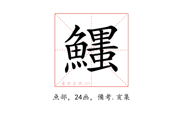 〔𩼞〕字收录于《康熙字典》備考・亥集,康熙部首是魚部。