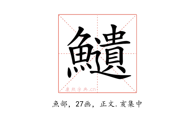 〔𩽎〕字收录于《康熙字典》正文・亥集中,康熙部首是魚部。