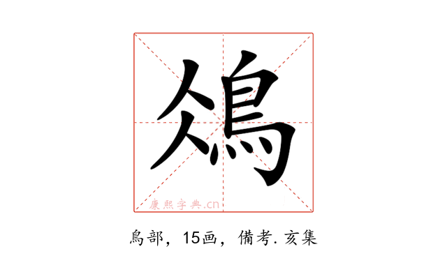 〔𩿕〕字收录于《康熙字典》備考・亥集,康熙部首是鳥部。
