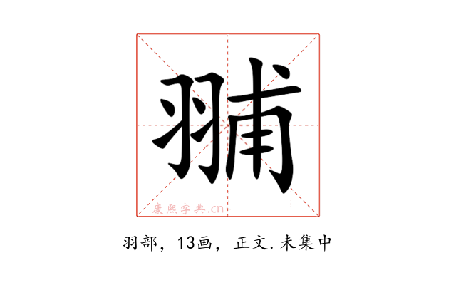 〔䎍〕字收录于《康熙字典》正文・未集中,康熙部首是羽部。