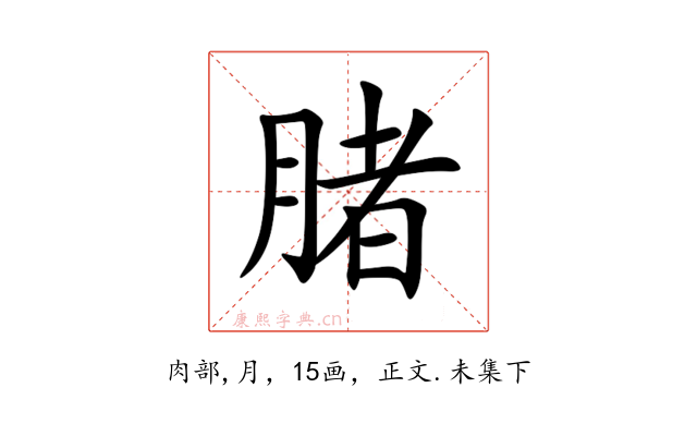 〔䐗〕字收录于《康熙字典》正文・未集下,康熙部首是肉部。