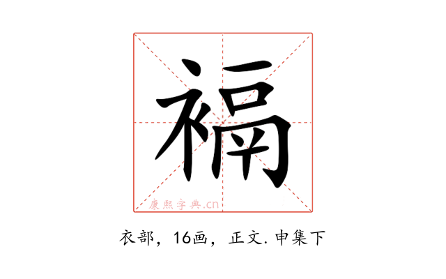 〔䙐〕字收录于《康熙字典》正文・申集下,康熙部首是衣部。