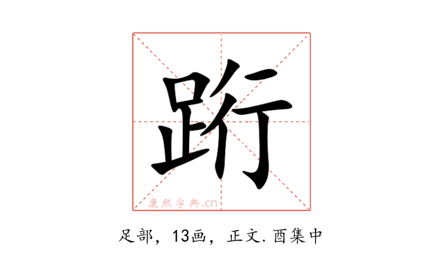 〔䟰〕字收录于《康熙字典》正文・酉集中,康熙部首是足部。