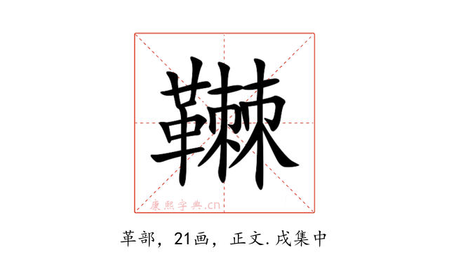 〔䪂〕字收录于《康熙字典》正文・戌集中,康熙部首是革部。