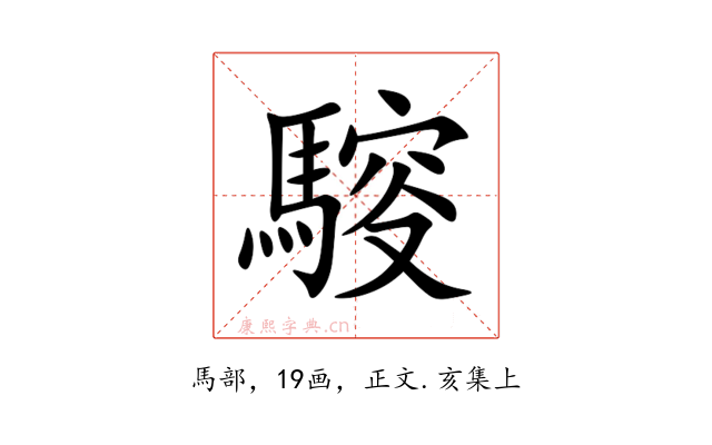 〔䮟〕字收录于《康熙字典》正文・亥集上,康熙部首是馬部。