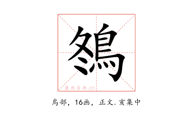 〔䳉〕字收录于《康熙字典》正文・亥集中,康熙部首是鳥部。