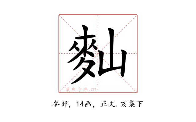 〔䴮〕字收录于《康熙字典》正文・亥集下,康熙部首是麥部。