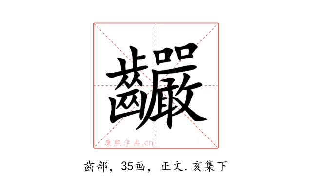 〔䶫〕字收录于《康熙字典》正文・亥集下,康熙部首是齒部。