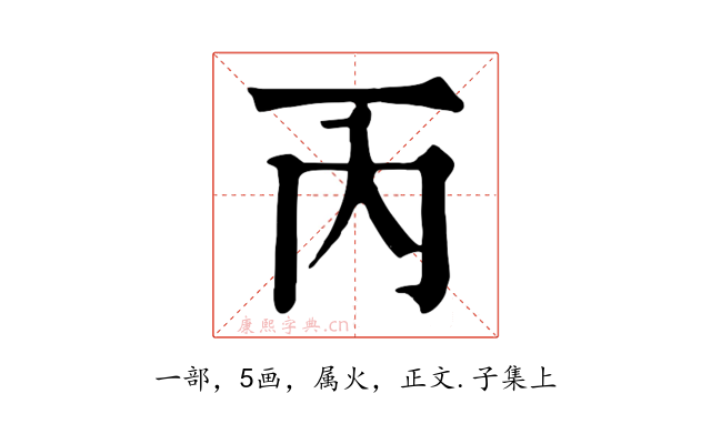 〔丙〕字收录于《康熙字典》正文・子集上,康熙部首是一部。