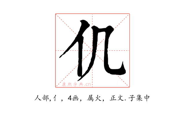 〔仉〕字收录于《康熙字典》正文・子集中,康熙部首是人部。