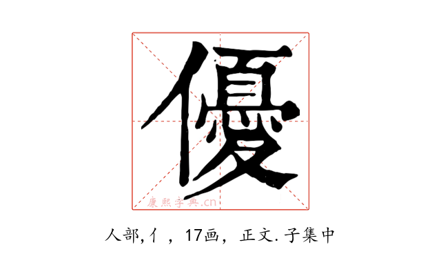 〔優〕字收录于《康熙字典》正文・子集中,康熙部首是人部。