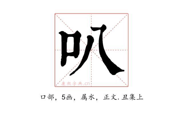 〔叭〕字收录于《康熙字典》正文・丑集上,康熙部首是口部。