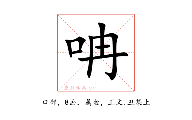 〔呥〕字收录于《康熙字典》正文・丑集上,康熙部首是口部。